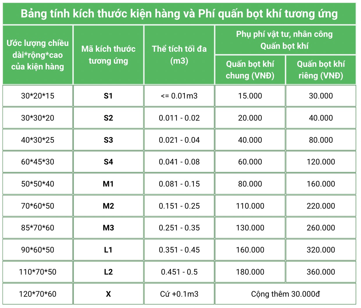 *Lưu ý: Khi Quấn bọt khí chung, chi phí vật tư và công Quấn bọt khí sẽ tiết kiệm hơn và được chia sẻ cho các kiện hàng