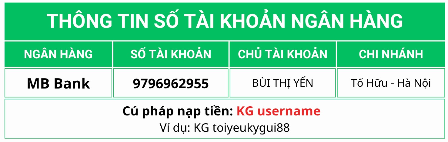 Quý khách chuyển tiền qua tài khoản Ngân hàng của KyGui88 như sau: