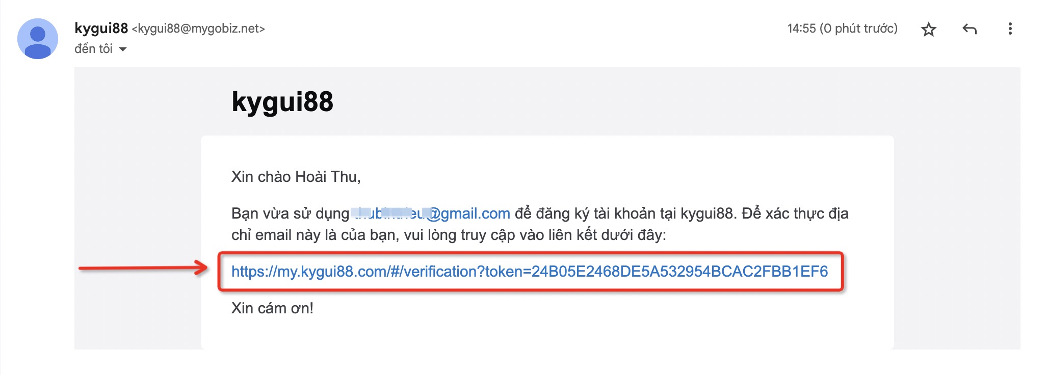 Bước 5: Khách hàng truy cập email và click vào đường link như trình để xác thực email và đăng nhập tài khoản